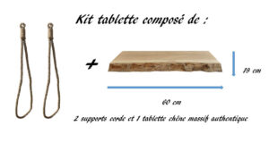 Étagère murale chêne authentique 60 X 19 corde est une tablette chêne massif de 60 x 19 cm +/- 2 cm épaisseur 2,2 cm, (pleine planche raboté et poncé un bord naturel).