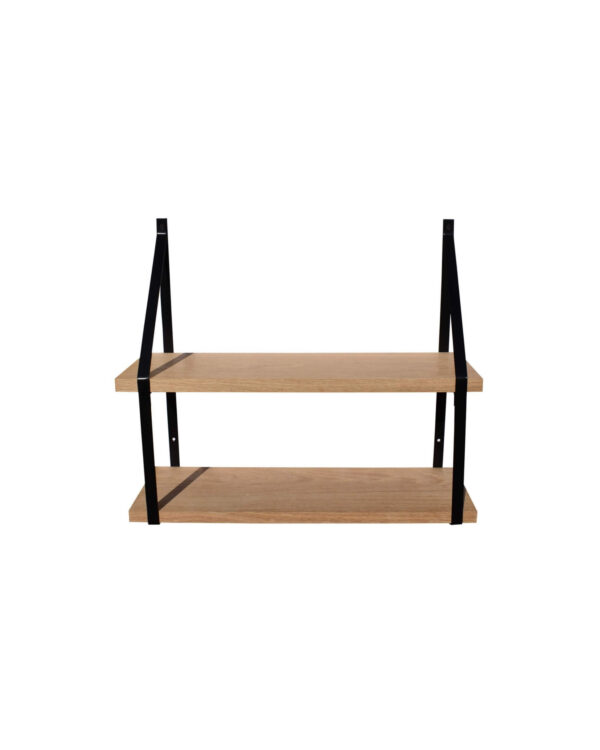 Étagère murale double chêne Cali 19 avec supports métal noir est un kit complet composé de deux tablettes chêne massif de 60 x 19 cm épaisseur 2,2 cm.